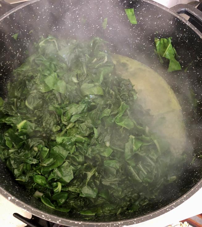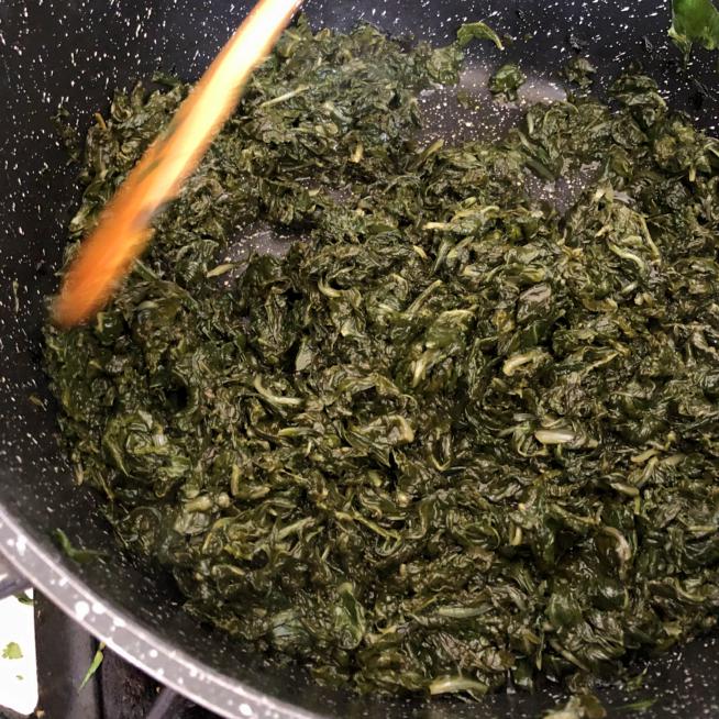 - מבשלים את התרד מעל להבה גבוהה, עד שהוא מתכווץ מאוד והסיר מתמלא בנוזלים.