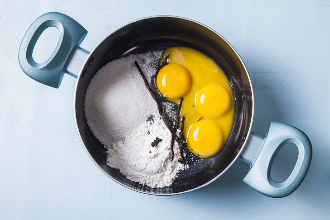 שילוב של שני אלמנטים הופך את הכנת קרם הפטיסייר למובהקת. ראשית זוהי הביצה, ליתר דיוק, חלמוני ביצה – אשר מכילים שומנים וחלבונים. השומנים נותנים טעם עשיר וטעים (במילה אחת: כולסטרול! אתה טעים!) והחלבונים נקרשים (תחשבו על ביצה שהופכת מנוזלית למוצקה כשמכינים חביתה) כאשר הם נחשפים לחום ותורמים למרקם של הקרם.