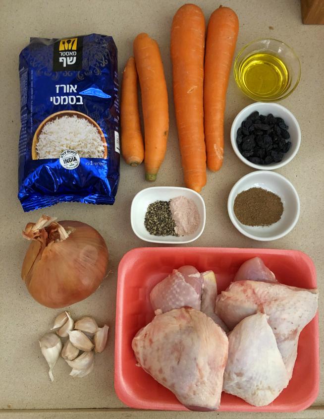 מתכון עוף עם אורז בתנור עם גזר וצימוקים