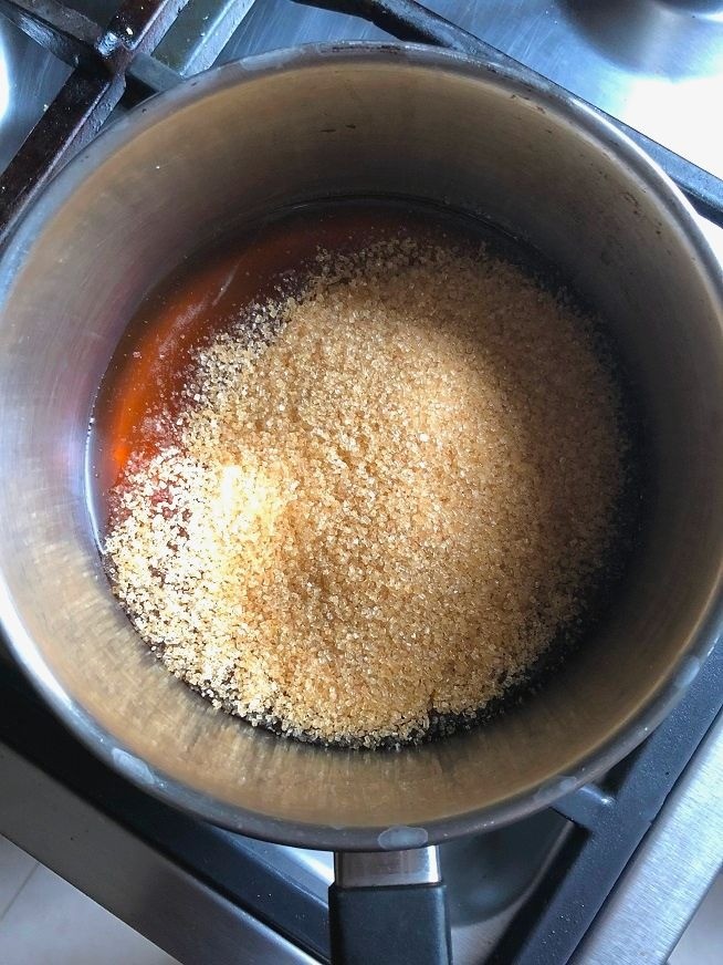 היחסים בסירופ הולכים ככה: כמות המתוק ששמים (סוכר, דבש, מייפל, אגבה וכן הלאה) כפולה מכמות המים. כלומר אם שמים כוס מים אז עליה שמים 2 כוסות של מתוק – אני הלכתי על סוכר חום ודבש.