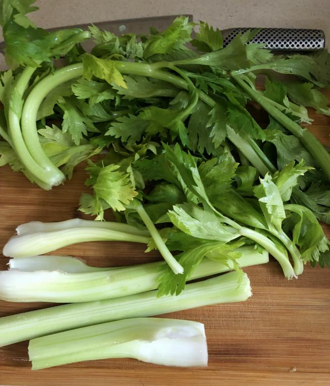 3-4 גבעולי סלרי גדולים (עם העלים)