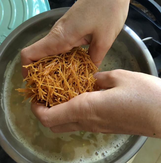 - מוסיפים את האטריות ומבשלים 5 דקות נוספות, עד שהאטריות רכות.