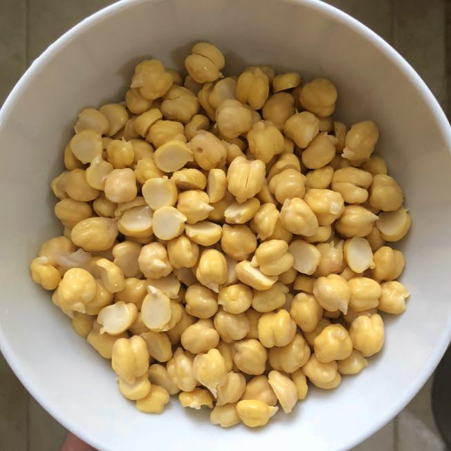 נופר השתמש בגרגרי חומוס גדולים (חומוס ספרדי, למרות שזה לא כזה משנה איזה סוג תשימו) אותם היא השרתה למשך הלילה בהרבה מים. בתום ההשריה היא רתמה אותי להצטרף אליה לקלף גרגר גרגר.
