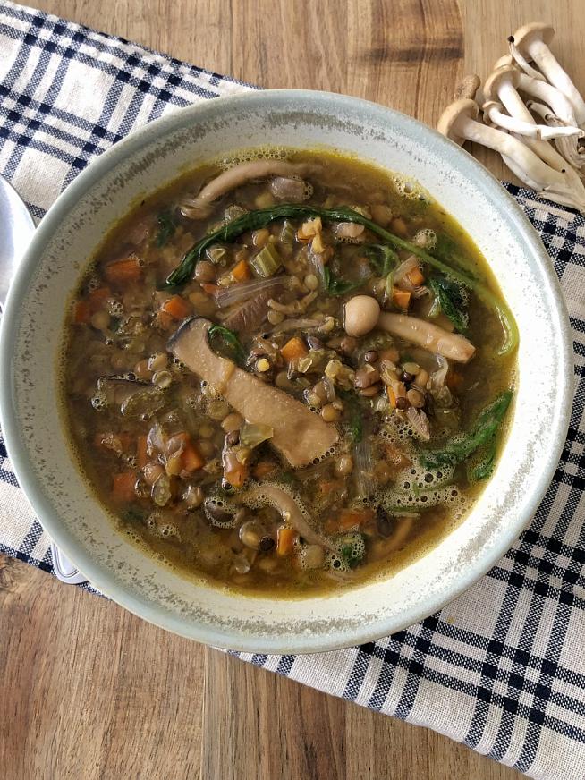 צפו: סרטון ההכנה של מתכון מרק עדשים ופטריות
