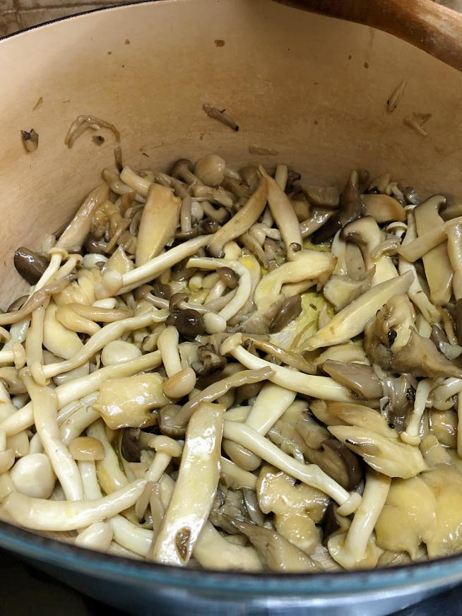 חשוב אולי לדייק את עניין הפטריות. אתה כותב להוסיף את *כל* הפטריות אבל בפועל הכוונה להבנתי היא רק לפטריות הטריות בהתחלה ורק בשלב שני את הפטריות המושרות..