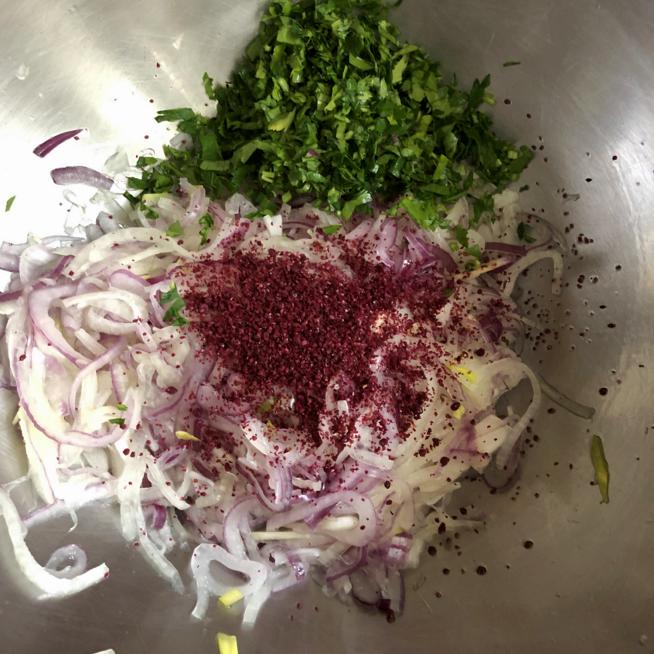 - מוסיפים את הסומאק והפטרוזיליה ומערבבים.