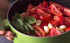 - שמים את הירקות החתוכים ואת עשבי התיבול, אם משתמשים, בסיר.
