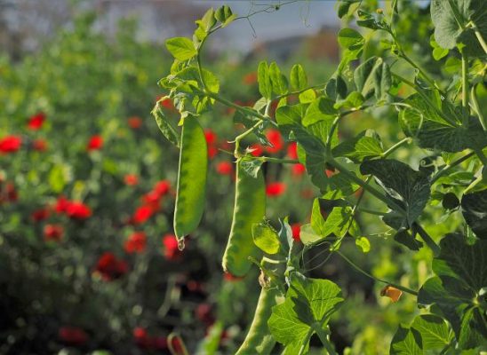 כל שיח אפונה נקפטף ידנית שלוש פעמים. צילום: טל גליק