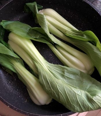 צורבים את הבאק צ'וי החצוי במחבת חמה עם שמן זית. צילום עז תלם