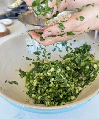 סוחטים מהמנגולד כמה שיותר נוזלים. צילום עז תלם