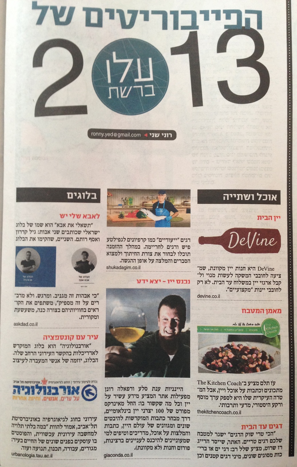 29.12.2013 – מדור 'עלו ברשת' של העיתון 'ידיעות אחרונות' בוחר באתר לרשימת האתרים המשובחים של שנת 2013: