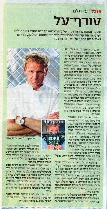 28.8.2011 – מאמר פרי עטי מתפרסם ב-24 שעות של ידיעות אחרונות, בעקבות יציאת הספר 'תיאבון בריא' של גורדון רמזי בעברית