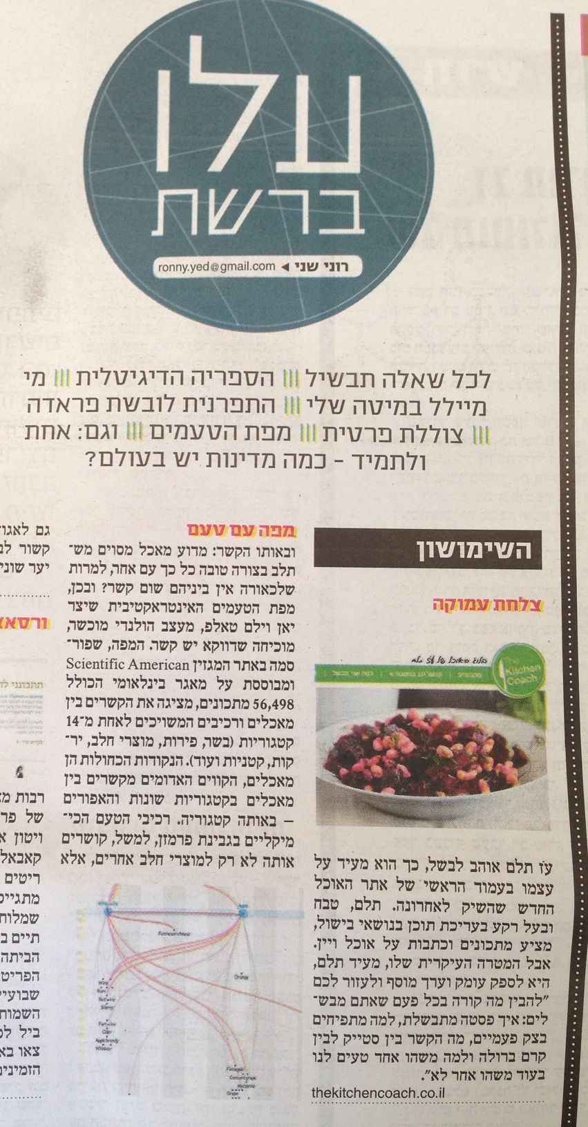 5.8.2008 – כתבת האוכל הראשונה שלי מתפרסמת באתר NRG