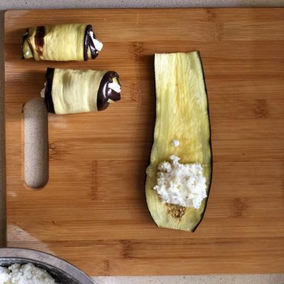 שמים כף מהתערובת בצד הרחב יותר של החציל. צילום עז תלם