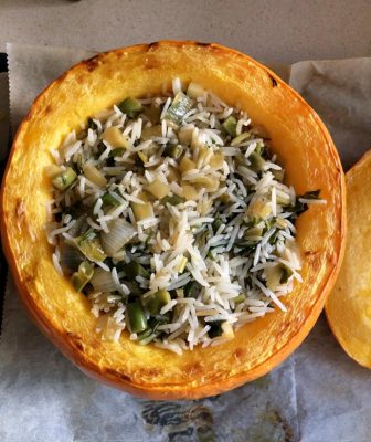 ממלאים את הדלעת עד הסוף – האורז לא מתרחב הרבה במהלך האפייה. צילום עז תלם