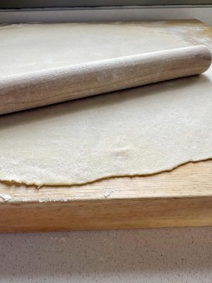 מרדדים את הבצק לעובי ממ או שניים. צילום עז תלם