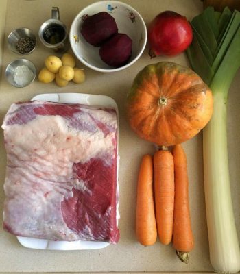 חזה בקר + 6 ברכות. אפשר לשים איזה ירקות שורש שרוצים. צילום עז תלם
