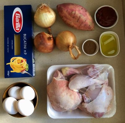 כל המצרכים לחמין מקרוני. צילום עז תלם