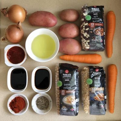 כל המצרכים לחמין צמחוני. צילום עז תלם