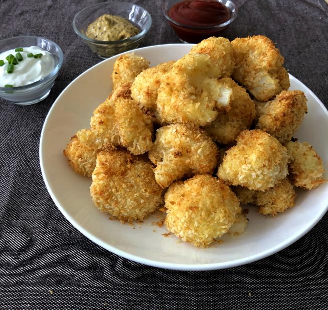 כרובית מטוגנת בתנור בציפוי פירורי לחם פריך (שניצל כרובית)