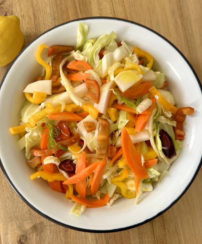 מסייר: סלט חמוצים טריפולטאי (אין כרובית בתמונה אבל ממש מוזמנים להוסיף 1/2 כרובית חתוכה לתפרחות קטנות)