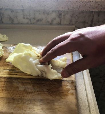 מניחים את צדדי העלה מעל המילוי. צילום עז תלם