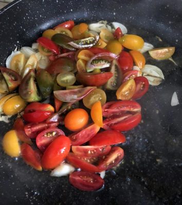לרוטב מטגנים קצת שום ועגבניות שרי. צילום עז תלם