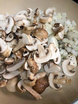 הרוטב מתחיל עם בצל ופטריות. צילום עז תלם
