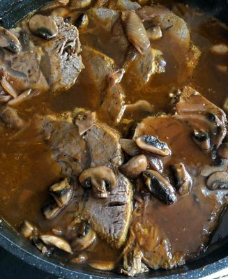 מוסיפים את פרוסות הכתף ומבשלים עד שהרוטב מתרכז ומצטמצם. צילום עז תלם