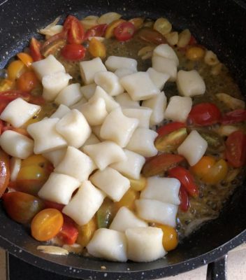 מוסיפים למחבת מי בישול של ניוקי וגם ניוקי. צילום עז תלם