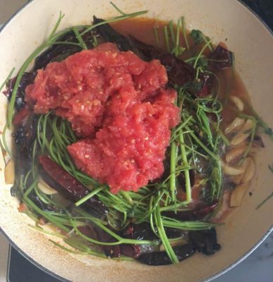 מוסיפים מים ועגבניות מגוררות. צילום עז תלם
