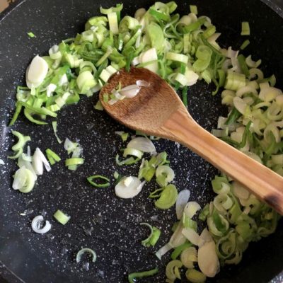 מטגנים קלות את השום והכרישה. צילום עז תלם