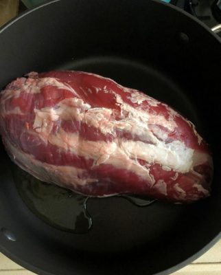 מניחים את הנתח בסיר עם שמן. צילום עז תלם