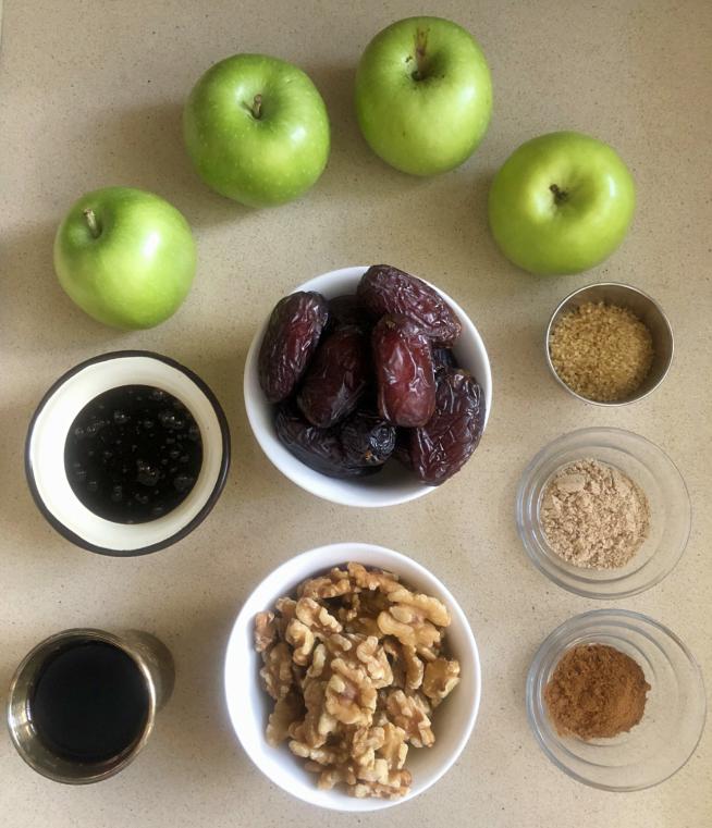 מרכיבים לשלושה סוגי חרוסת. צילום עז תלם