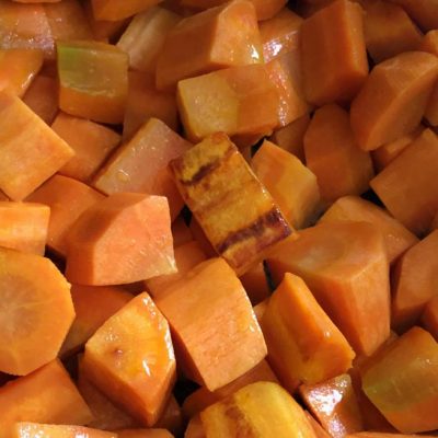 מטגנים ללא ערבוב 3-4 דקות מעל להבה גבוהה, עד שהגזרים מתחילים לקבל צבע כזה. צילום עז תלם
