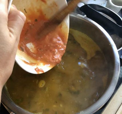 ואז מוסיפים למרק. ערבוב קל, ואז מוסיפים מיץ לימון, מלח פלפל וזה מוכן. צילום עז תלם