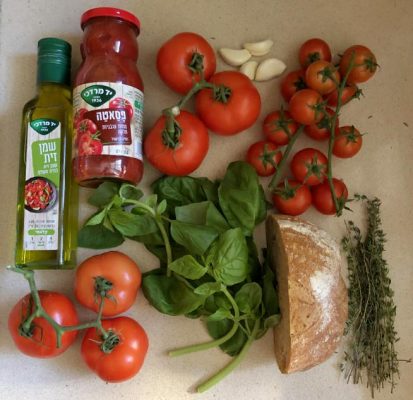 כל המצרכים למרק עגבניות ולחם. צילום עז תלם