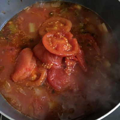 מעבירים את העגבנית הצלויות למרק (ומוציאים את גבעול העגבניה אם השתמשתם בו). צילום עז תלם