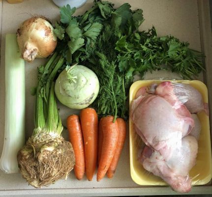 כל המצרכים למרק (הוספתי גם מלח ותפוחי אדמה). צילום עז תלם