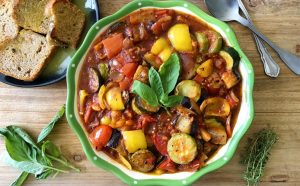 • מביאים לרתיחה מעל להבה גבוהה, מכסים את הסיר על להבה בינונית-גבוהה 25-40 דקות, עד שכל הירקות התרככו לחלוטין (בודקים עם מזלג האם הירק שחתוך הכי גדול רך).