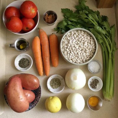 כל המצרכים למרק (את הלימון והכורכום לא הוספתי בסוף אבל בהחלט אפשר). צילום עז תלם
