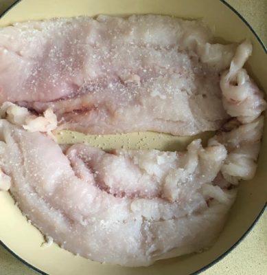 משרים את פילה הדג במעט מלח. צילום עז תלם
