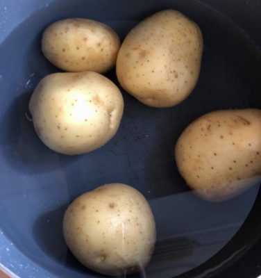 תפוחי אדמה באטר בתחילת הבישול. צילום עז תלם