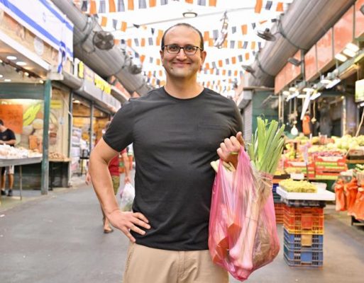 עם הקניות מהשוק. צילום שי פיירשטיין