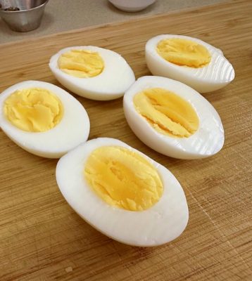 ביצים קשות כמו שצריך – החלמון עדיין צהוב. צילום עז תלם