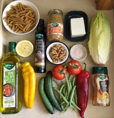 כל המצרכים לסלט פסטה. צילום עז תלם