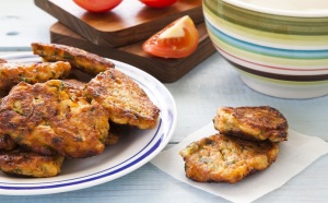 מבחינת הציפוי, את הסדר אתם מכירים: קמח (שיכול להיות כל קמח שאתם מכירים) ואחריו ביצה טרופה – שלעתים מחליפים ברוויון. המטרה כאן היא לקחת נוזל סמיך שידביק את המשתתף הבא בציפוי, אז אתם לא אוכלים מוצרים מן החי, בלילה פשוטה של קמח ומים, שטורפים לסמיכות של טחינה דלילה תתאים. לסיום, קמח תירס דק (cornmeal), לפולנטה אינסטנט, הוא הכיוון שיהיה הכי נאמן למסורת, אבל אפשר להשתמש בכל דבר פחמימתי ועם מרקם טוב, כמו סולת, קמח מצה, פירורי לחם ופירורי קורנפלקס אם אתם מעזים. בכל מקרה, מכינים מיד ומגישים.