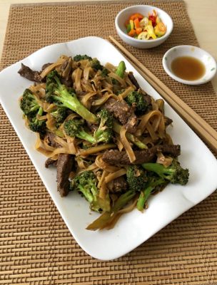 ברוקולי, בשר, אטריות ושום =] . צילום עז תלם