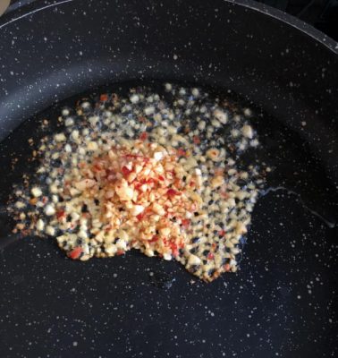 מתחילים בטיגון של שום וצ'ילי קצוצים. צילום עז תלם