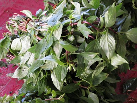 בזיליקום תאילנדי באחד השווקים בתאילנד. צילום עז תלם